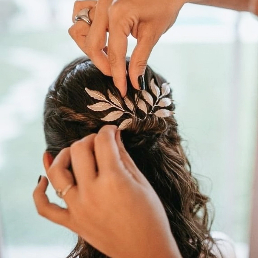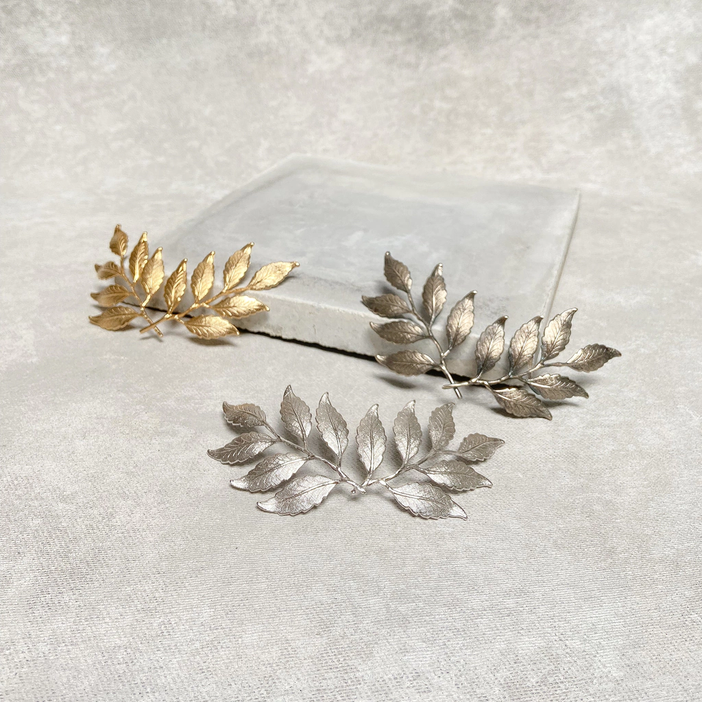 Tocado de bronce realizado en técnica de joyería bañada en plata, oro u oro rosé.