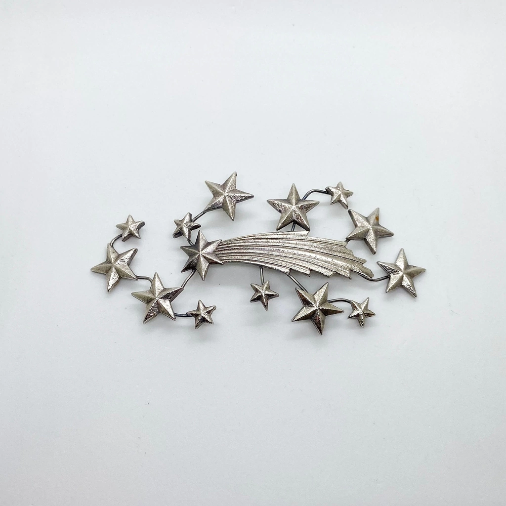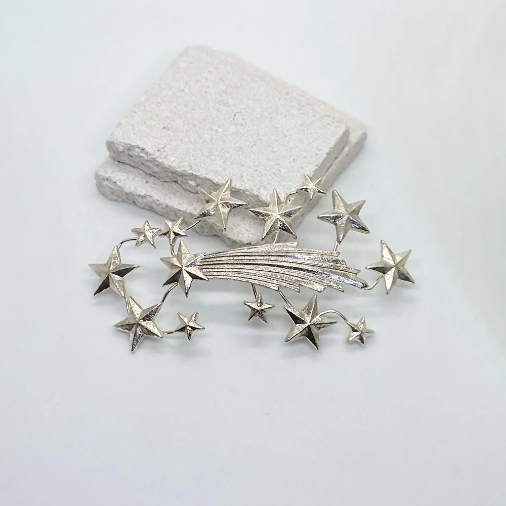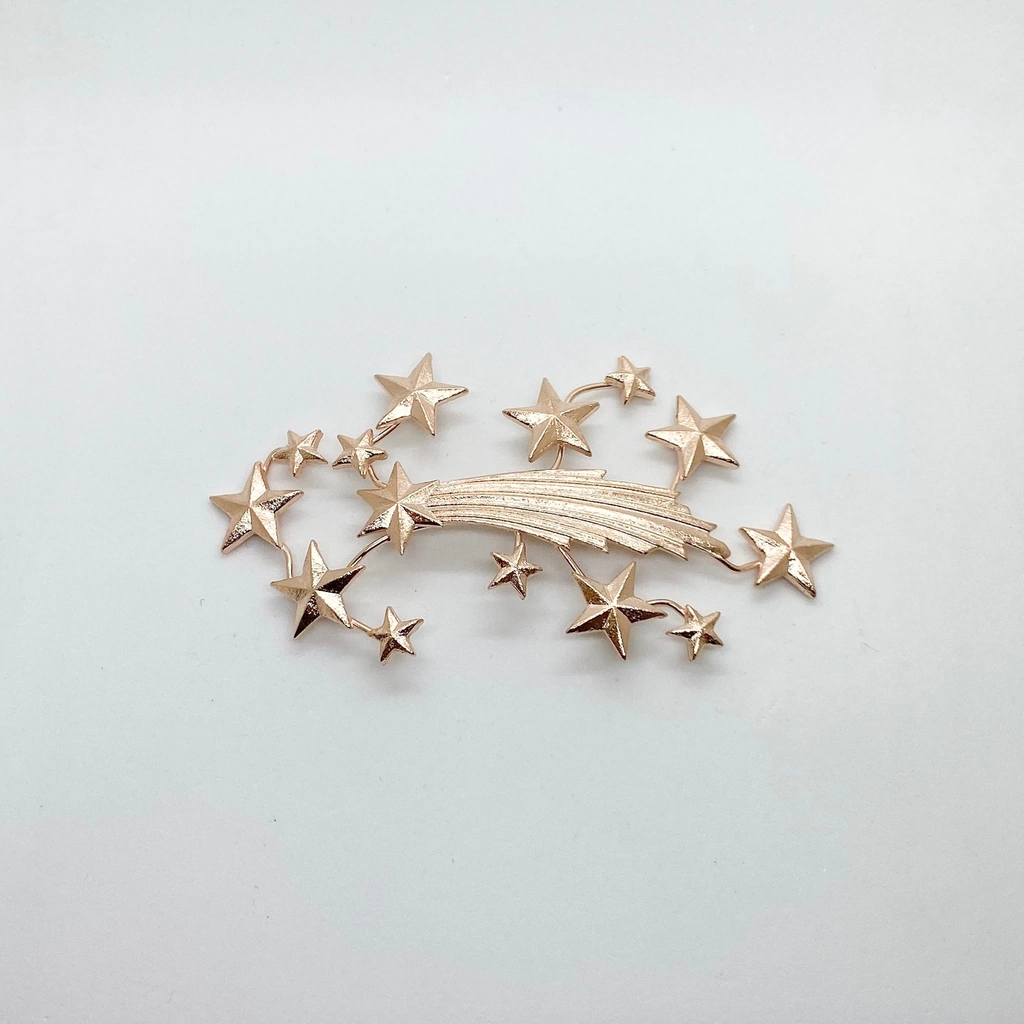Aplique de bronce, realizado en técnica de joyería, con estrellas, bañada en plata, plata empavonada, oro rosé u oro.